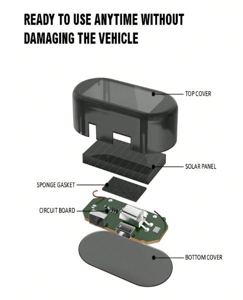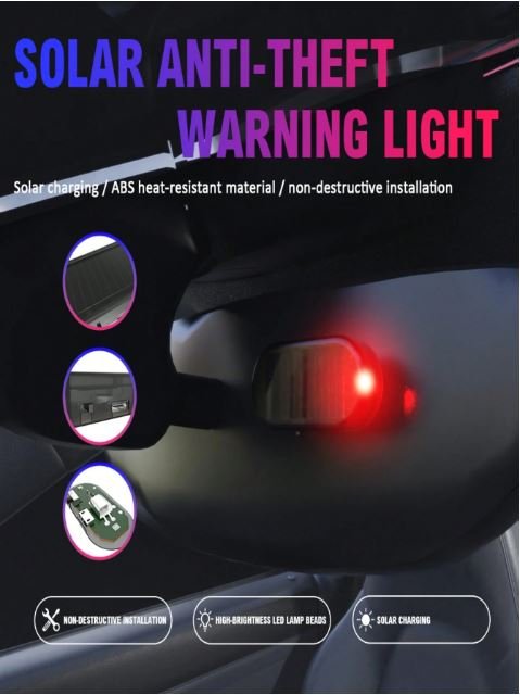 إضاءة إنذار ضد السرقة وهمية. تعمل عن طريق الطاقة الشمسية وعن طريق الشحن.