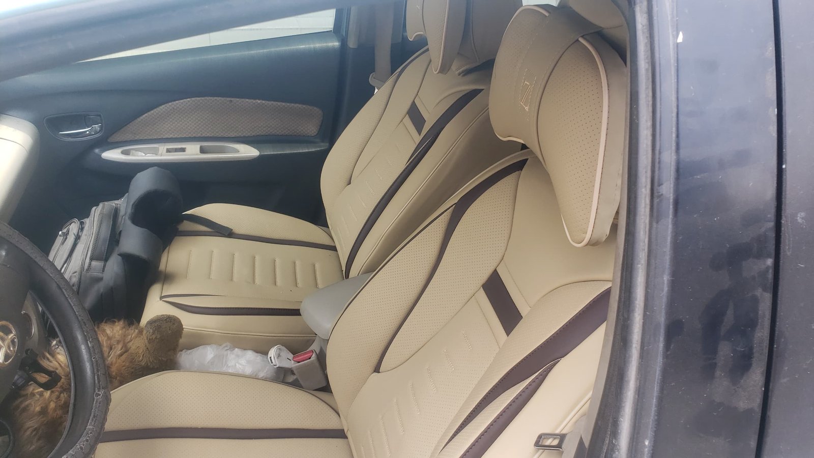 تلبيسة كراسي جلد منقط راقي بيج. تتكون من 15 قطعة. مناسبة لجميع أنواع السيارات.