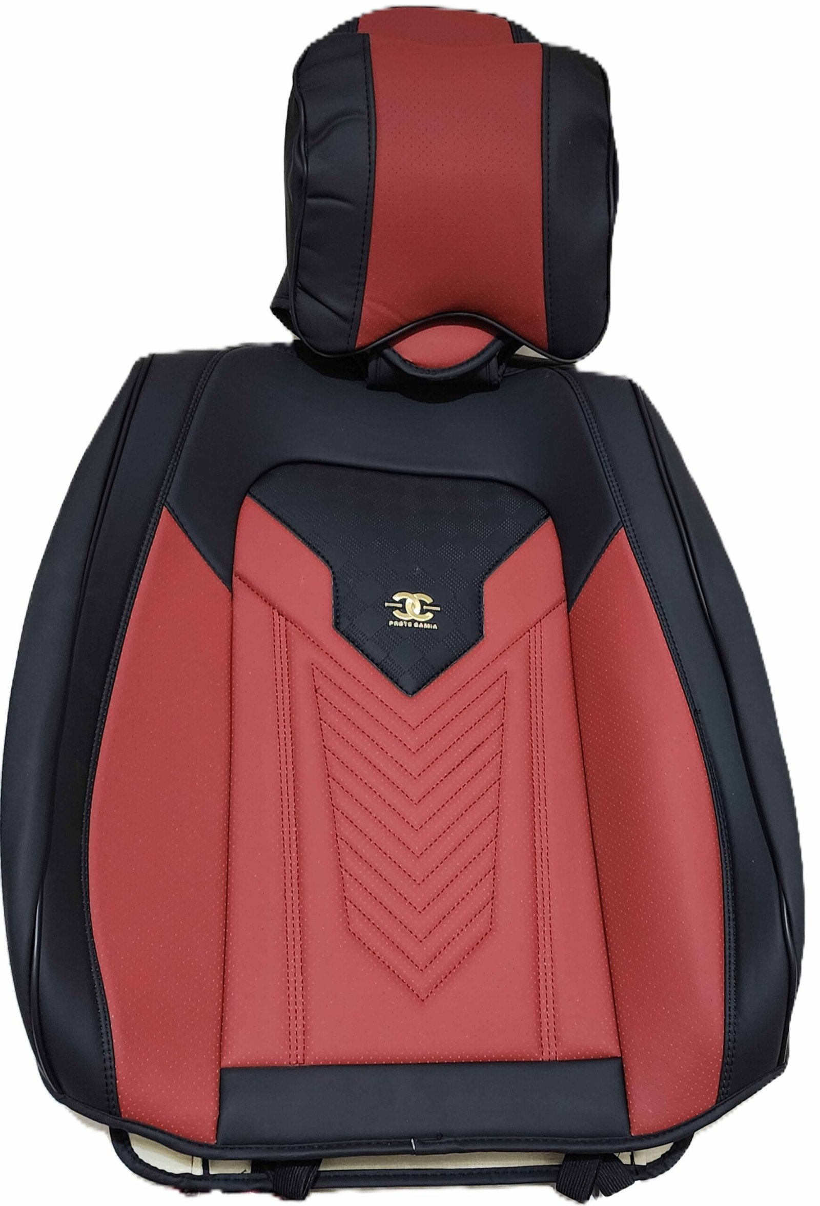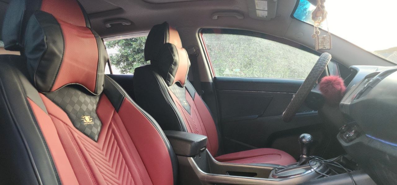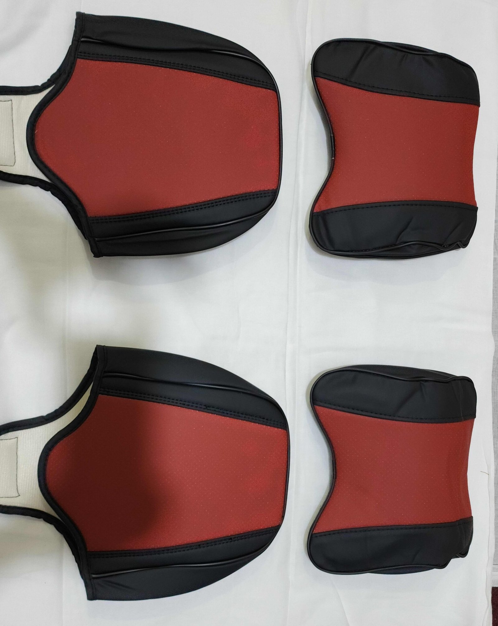 تلبيسة كراسي جلد راقي أحمرمع أسود. تتكون من 15 قطعة. مناسبة لجميع أنواع السيارات.