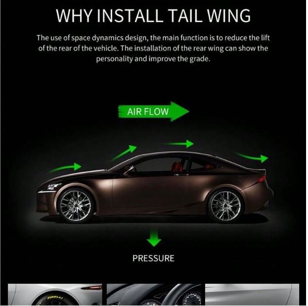 جناح خلفي للسيارة الكامل الأسود ثلاثي المراحل.