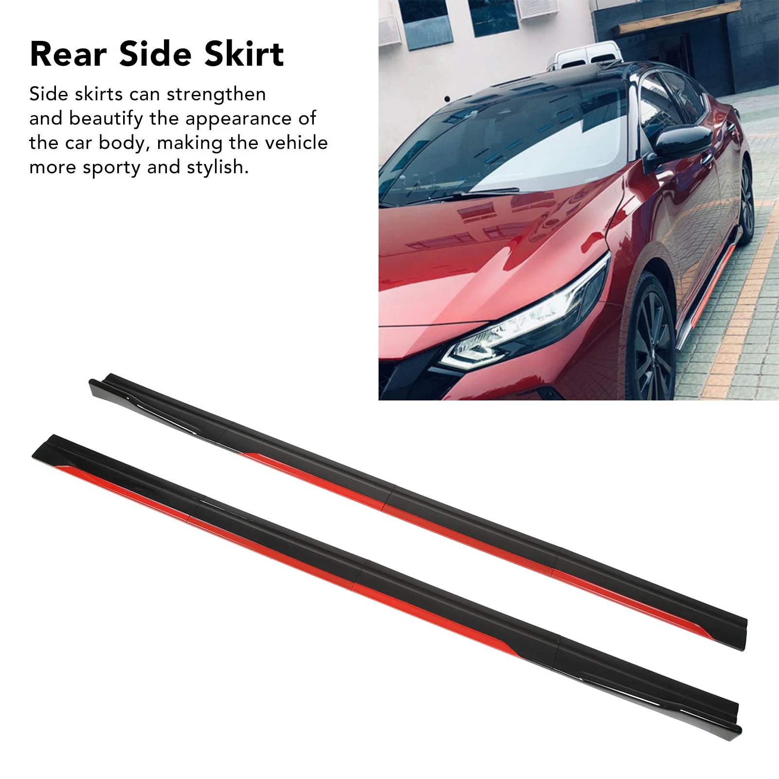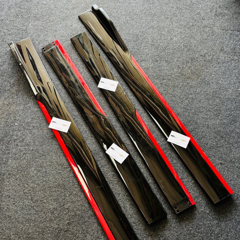طقم زوائد رياضية جانبية – أحمر على أسود. تركب على جانبي السيارة