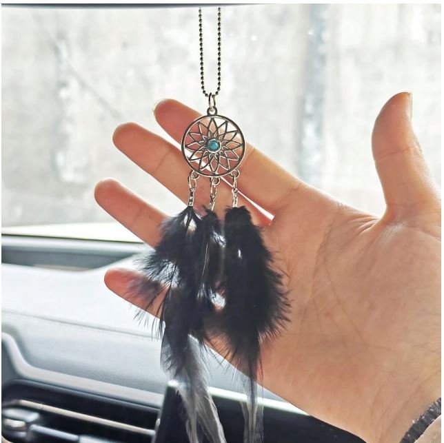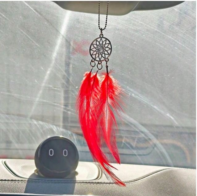 زينة مرآة الرؤية الخلفية للسيارة مصنوعة من الريش