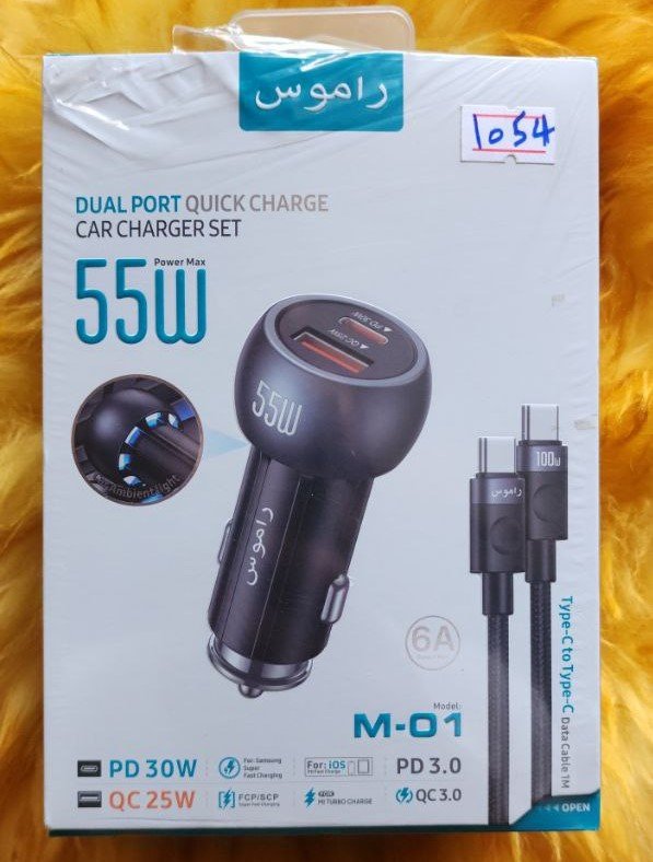 شاحن تلفون راموس – 55 وات – يدعم الشحن السريع جداً – مع توصيلة Type-C>Type-C