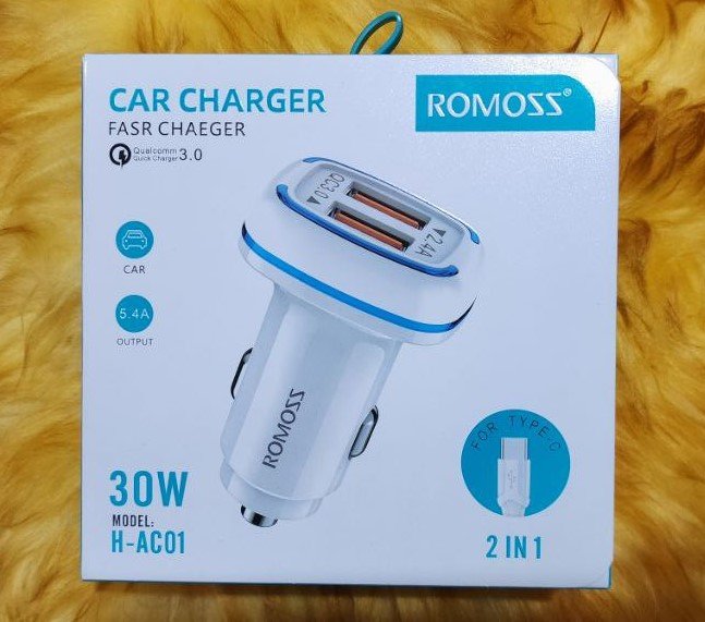 شاحن تلفون 30 وات – ROMOSS – يدعم الشحن السريع – مع توصيلة USB>Type-C