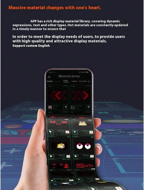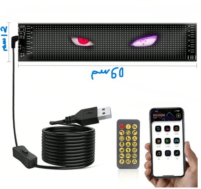 شاشة عرض مرنة – 12*60 سم. تحكم كامل عبر التلفون. تدعم اللغة العربية.