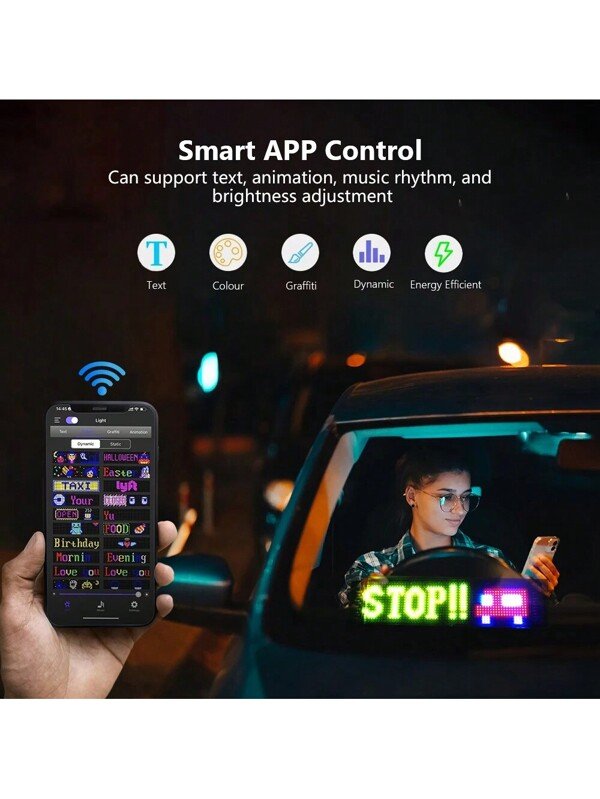 شاشة عرض مرنة بمقاسات مختلفة. تحكم كامل عبر التلفون. تدعم اللغة العربية.