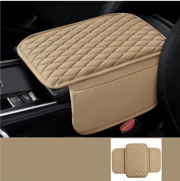 غطاء مسند ذراع-جلد-بيج-مع الأجياب