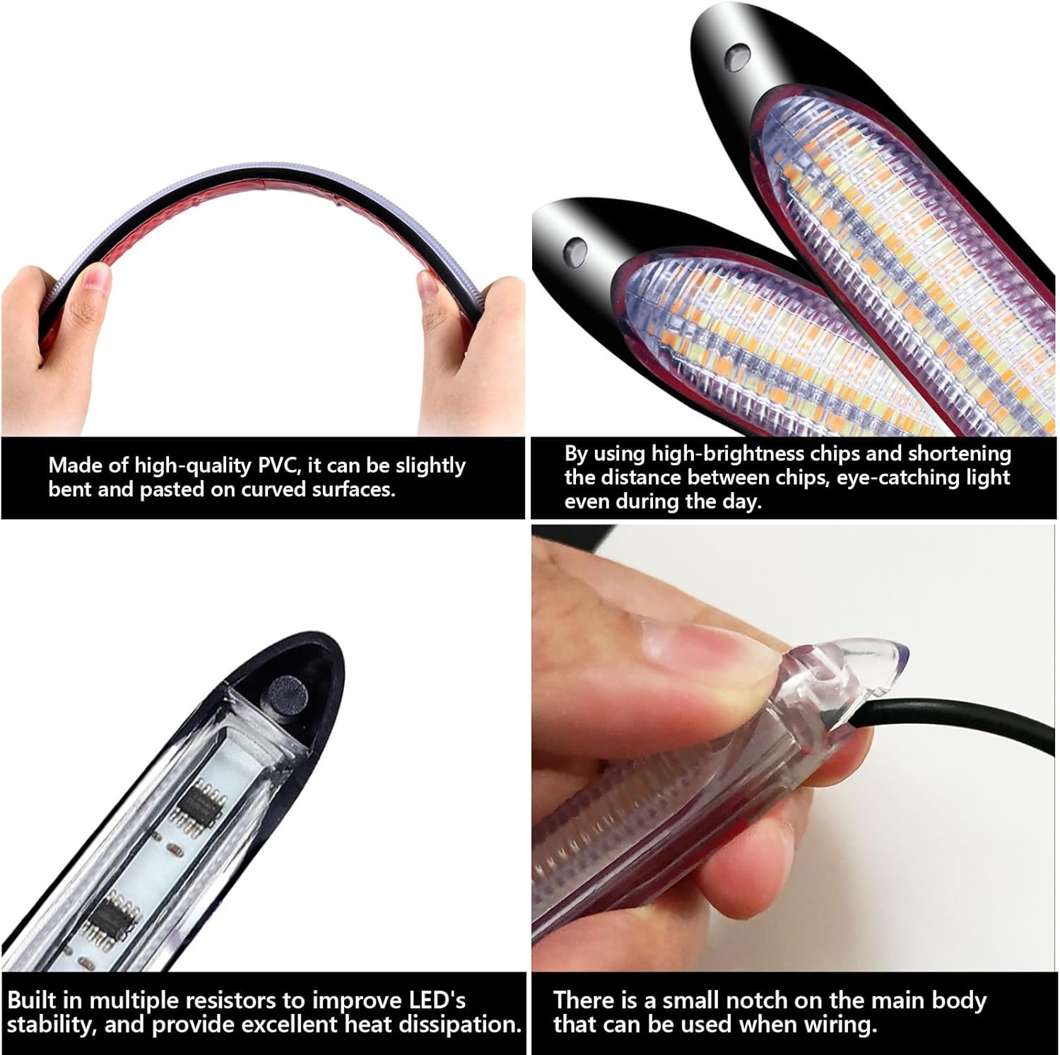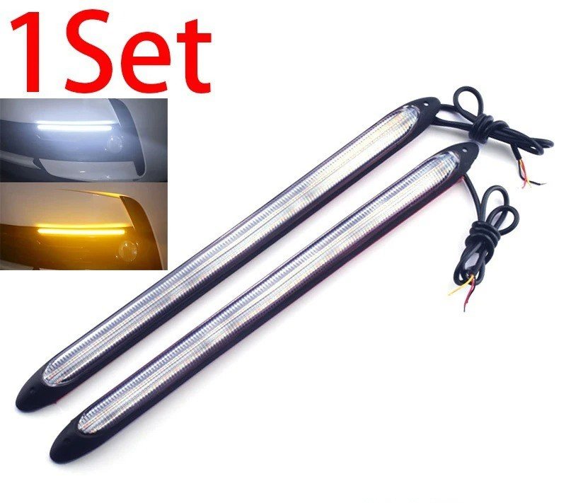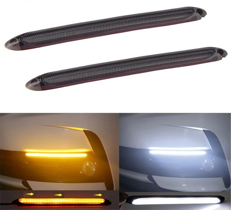 إضاءة نهارية بيضاء + إضاءة إشارات إنعطاف صفراء.