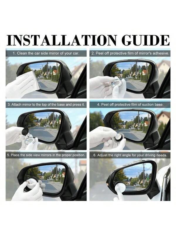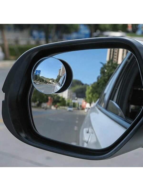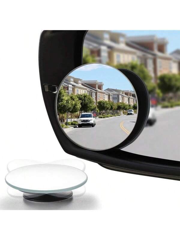 مرايا النقطة العميى، 2بوصة دائرية زجاجية HDبدون إطار محدبة، ملحقات مرآة خلفية خارجية بزاوية واسعة قابلة للتعديل.