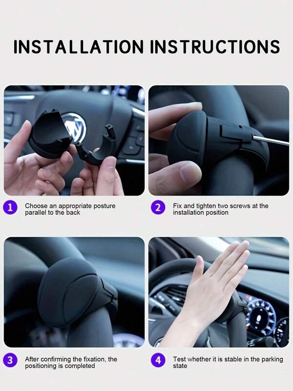 مقبض عجلة القيادة المصنوع من السيليكون – دوران 360 درجة، مضاد للانزلاق، تشغيل بيد واحدة، يناسب جميع السيارات.