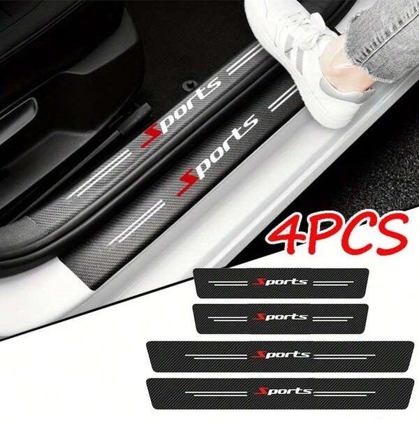 ملصقات حماية عتبة باب السيارة – 4 قطع – نمط كاربون فايبر