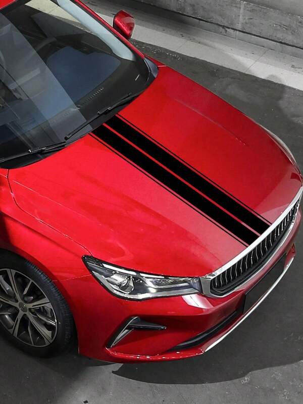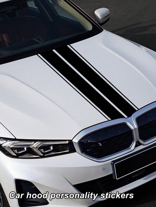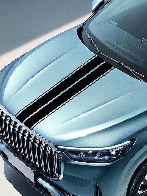 ملصق سيارة مخطط لغطاء محرك السيارة-أسود-120سم*24سم