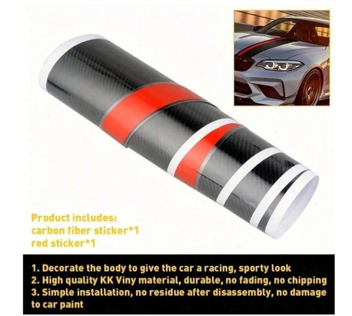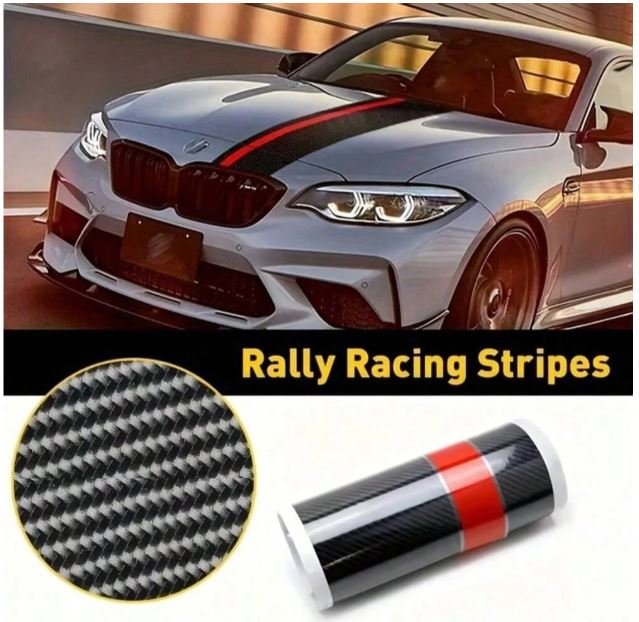 ملصقات فينيل 5Dذات درجة عالية من الألياف الكربونية – شرائط سيارة سباق ران إم ريلي على غطاء المحرك ، ملصقات ألياف كربونية 5Dتناسب غطاء محرك السيارة ، سهلة التطبيق والإزالة.