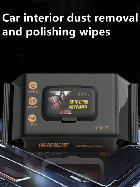 المناديل المبللة لتنظيف داخل السيارة، مرطب ومجدد للجلد، مواد تنظيف سريعة الإزالة للبقع.