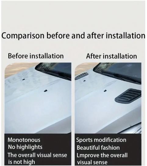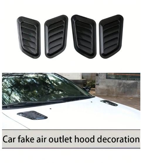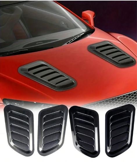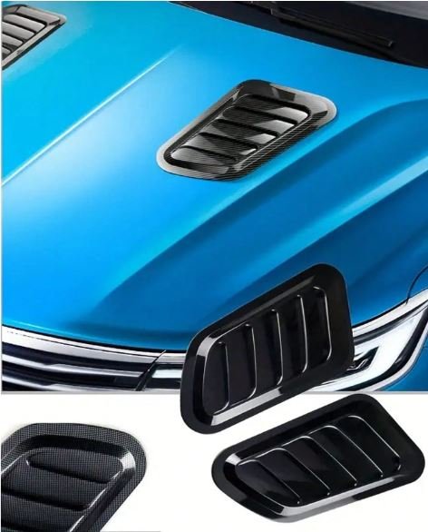 قطعتان لمخرج الهواء على غطاء محرك السيارة بتصميم زعانف القرش المخصصة، ديكورات محاكاه لمخرج الهواء لتزيين السيارة.