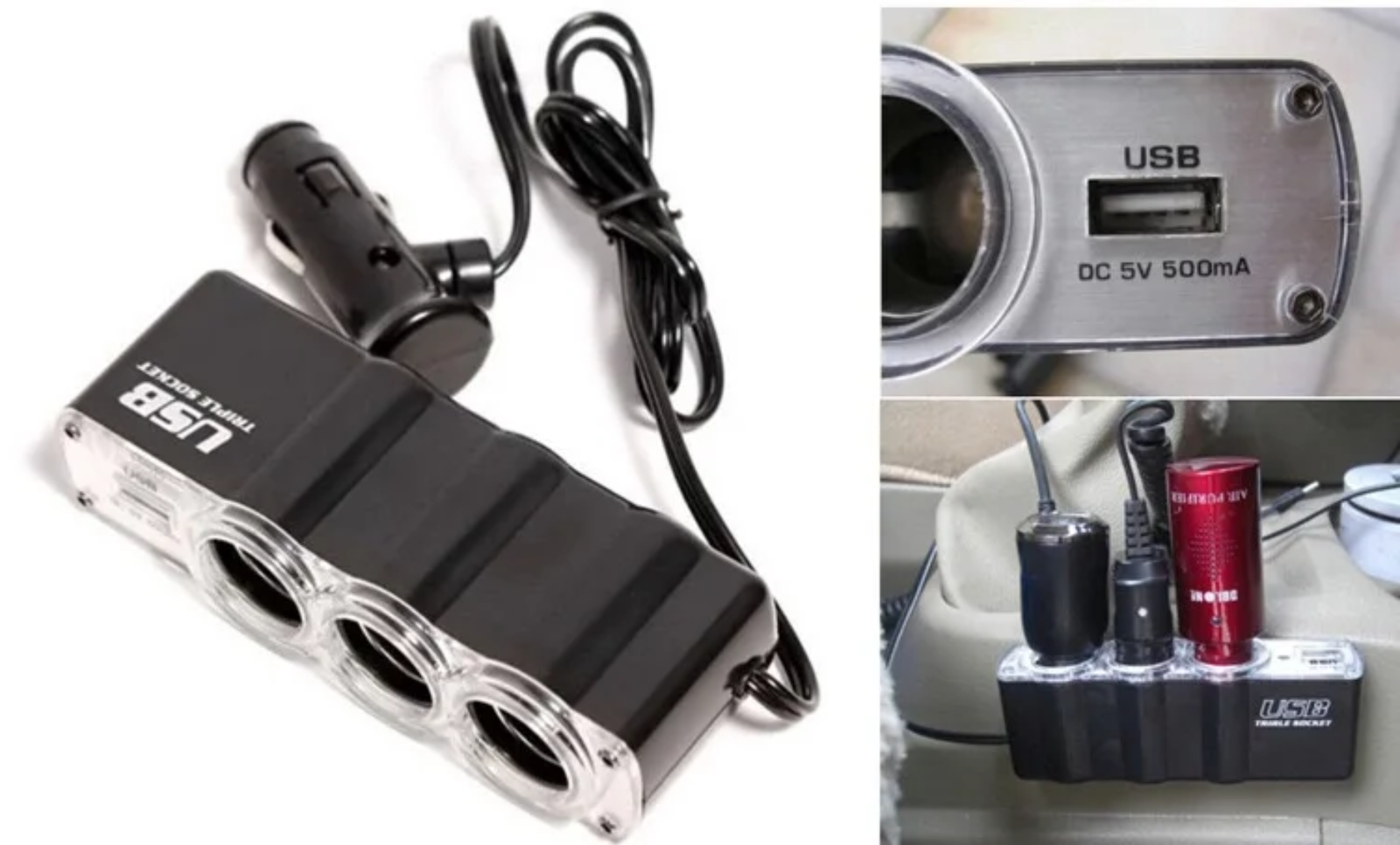 موزع منفذ الولاعة – 3 منافذ + منفذ USB